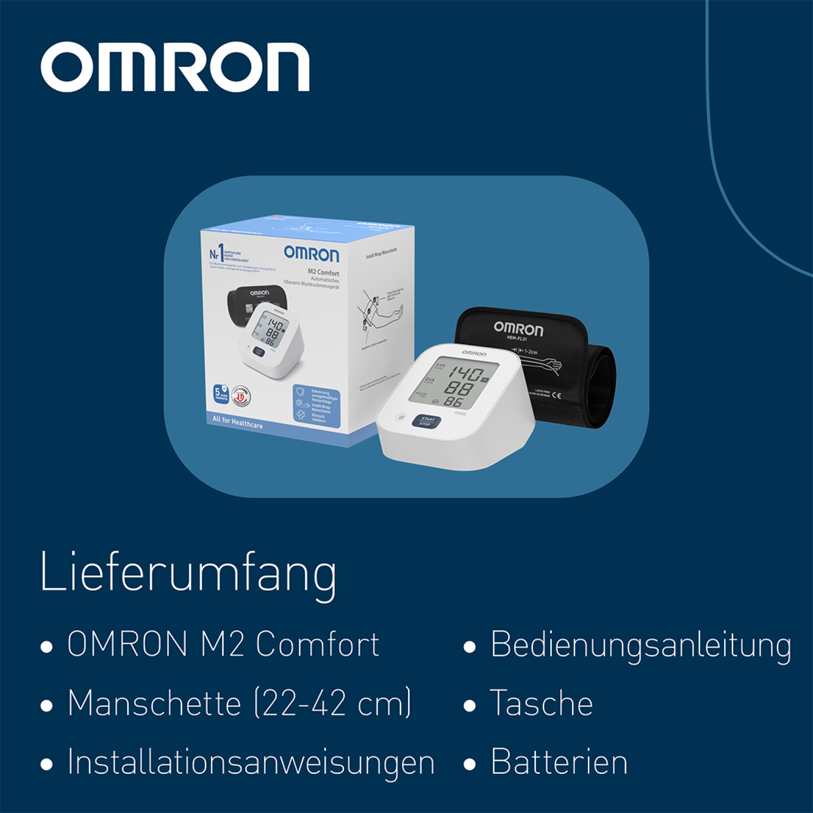 Das OMRON M2 Comfort ist ein zuverlässiges und benutzerfreundliches Oberarm-Blutdruckmessgerät, das die Überwachung des Blutdrucks zu Hause erleichtert. Es kombiniert klinisch bewährte Technologien mit praktischen Funktionen für den Alltag.