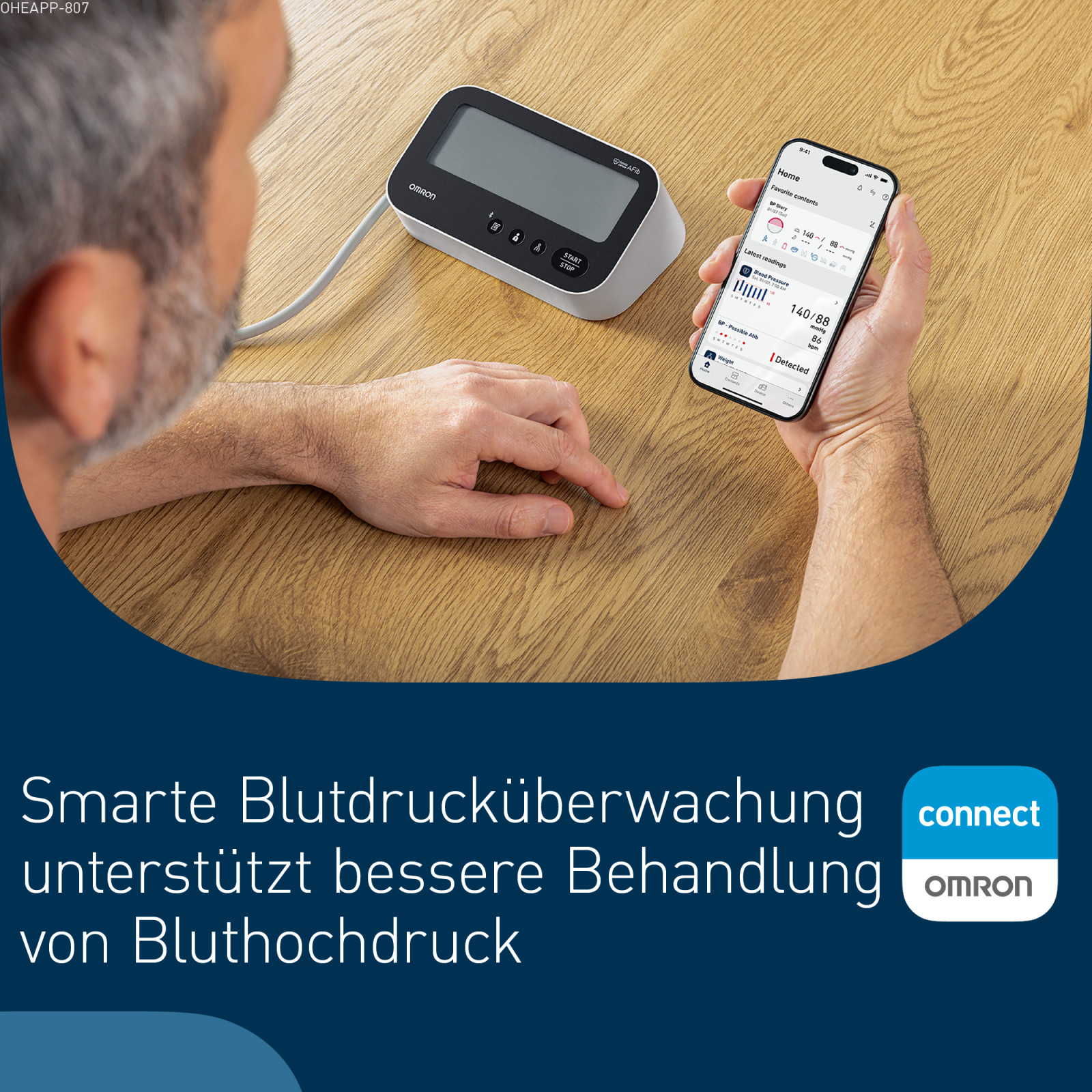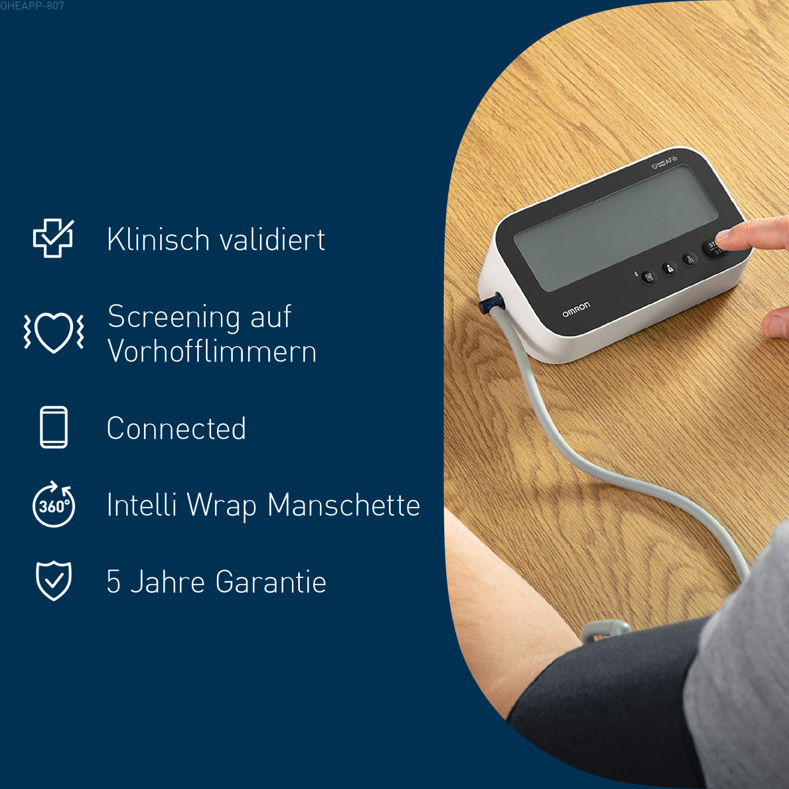 Der OMRON M4 Connect AFib ist ein fortschrittliches Blutdruckmessgerät, das die Überwachung von Bluthochdruck zu Hause erleichtert und die Übertragung der Ergebnisse per Bluetooth an die OMRON connect App auf dem Smartphone ermöglicht. Es verfügt jetzt über neue Funktionen, wie die Erkennung von Vorhofflimmern (AFib) und die 3-fach Messfunktion, welche die Zuverlässigkeit verbessern und die kardiovaskuläre Prävention unterstützen. (Nicht für diagnostische Zwecke geeignet)