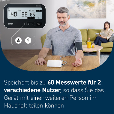 Speicher für 2 Benutzer (je 60 Messungen) + Gastmodus