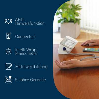 Außerdem kann das OMRON M500 intelli IT nach dem Koppeln mit Bluetooth die Blutdruckwerte automatisch an Ihr Smartphone übermitteln, sodass in der App OMRON connect immer die neuesten Werte zur Verfügung stehen. Mit der App OMRON connect können Sie Ihre Fortschritte nachverfolgen oder die Messergebnisse an Ihren Arzt weitergeben. Sie können auch Alexa nach Ihrem letzten Blutdruckmesswert fragen oder Ihre Durchschnittswerte im zeitlichen Verlauf vergleichen.