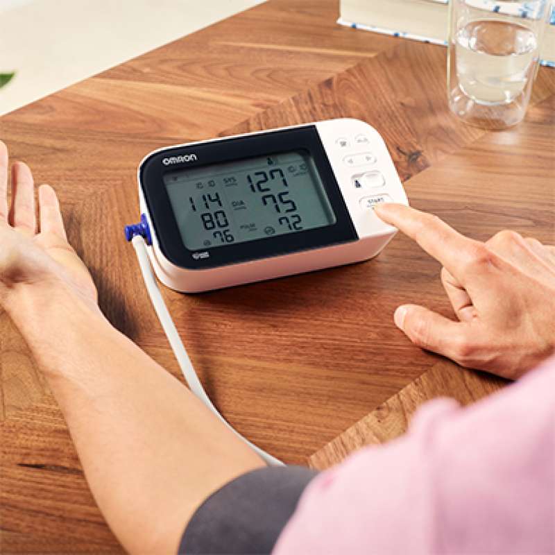 Es gibt verschiedene Gründe, warum deine Messwerte uneinheitlich sein können. Es gibt viele Faktoren, die eine Abweichung der Blutdruckmesswerte verursachen können, zum Beispiel können kürzliche Aktivitäten oder sogar die Tageszeit den Messwert verändern. Außerdem ist die Technik des Benutzers sehr wichtig für zuverlässige Messergebnisse. Nachfolgend sind einige der häufigsten Gründe für uneinheitliche oder ungenaue Messwerte aufgelistet: Manschettengröße Es ist sehr wichtig, dass du die richtige Manschettengröße für deinen Arm verwendest, um genaue Messergebnisse zu erhalten, wenn du dein Blutdruckmessgerät benutzt. Um die richtige Manschettengröße zu bestimmen, musst du den Umfang deines Arms messen. Du solltest deinen Armumfang regelmäßig messen. Das gilt vor allem dann, wenn du einen grenzwertigen Armumfang hast oder wenn du zu- oder abgenommen hast. Es ist wichtig, dass die Manschette, die du mit deinem Blutdruckmessgerät verwendest, die richtige Größe für dich hat. Wenn du die falsche Manschette verwendest, kann das zu ungenauen Messwerten führen und/oder die Manschette wird beschädigt (Luftblase). Um deine Armgröße zu bestimmen, nimm ein Maßband aus Stoff und lege es in der Mitte zwischen Ellbogen und Schulter um den Umfang deines Oberarms. Wickle das Maßband gleichmäßig um deinen Arm. Ziehe das Band nicht zu fest. Notiere das genaue Maß in Zentimetern. Anlegen der Manschette 1. Lege deinen linken Arm durch die Schlaufe der Manschette. Die Unterseite der Manschette sollte sich etwa 1 - 2 cm über deinem Ellenbogen befinden (Dicke des Zeige- oder Mittelfingers). Lege die Manschette so um deinen Arm, dass der Schlauch in der Mitte deines Arms auf Höhe deines Mittelfingers verläuft. 2. Befestige die Manschette mit dem Stoffverschluss um deinen Arm. Ziehe die Manschette so, dass die obere und untere Kante gleichmäßig um deinen Arm gespannt ist. 3. Ziehe die Manschette fest, aber nicht zu fest an - gerade so fest, dass es schwierig ist, 2 Finger unter die Manschette zu schieben. Dieser Abstand ist für eine genaue Messung unerlässlich, da die digitalen Blutdruckmessgeräte von OMRON die oszillometrische Methode der Blutdruckmessung verwenden, die die Bewegung deines Blutes durch die Arteria brachialis erfasst und in einen digitalen Messwert umwandelt. Vor der Messung Vermeide es, 30 Minuten lang zu essen, Alkohol zu trinken, zu rauchen, Sport zu treiben und zu baden und ruhe dich 15 Minuten lang aus, bevor du mit der Messung beginnst. Vermeide es, die Messung in stressigen Zeiten durchzuführen. Nimm die Messung an einem ruhigen Ort vor. Körperposition Setz dich auf einen Stuhl und stelle deine Füße flach auf den Boden. Lege deinen Arm mit der Handfläche nach oben auf einen Tisch. Die Manschette sollte sich auf Höhe deines Herzens befinden. Sprich während der Messung nicht und bewege dich nicht. Weitere Informationen findest du in der Gebrauchsanweisung deines Geräts.