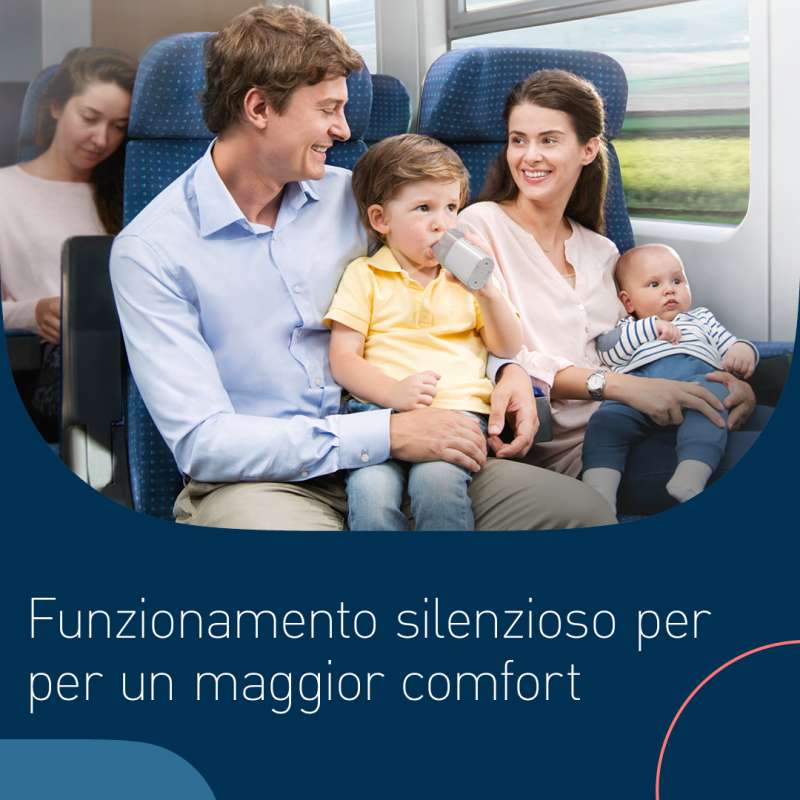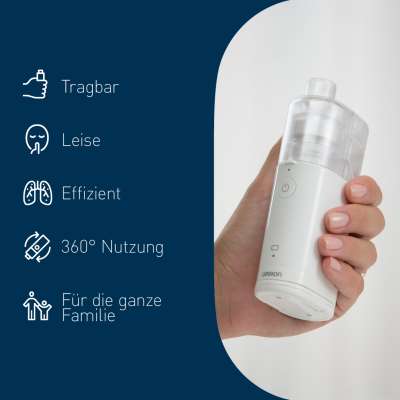 Jetzt ist eine Lösung in Sicht, sogar für Reisen. Der batteriebetriebene MicroAir U100 ist kompakt, reisetauglich und einfach zu verwenden, wo auch immer Sie ihn benötigen. Dank der einzigartigen Membran-Technologie ist er effizienter1 und bequemer in der Handhabung als herkömmliche Vernebler. Er ist fast geräuschlos und die einzigartige Konstruktion ermöglicht die Anwendung in jeder Position. Selbst im Liegen ist er nutzbar und eignet sich daher insbesondere für kleinere Kinder.